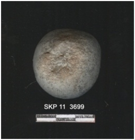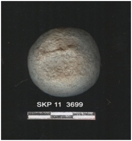 | Description / विवरण | The terracotta ball is well fired. One side flat. Roughly rounded. Grayish in color. |