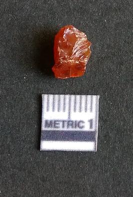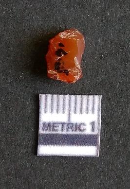| Description / विवरण | The Carnelian flake roughout shows flake scars owing to the cryptocrystalline material and a bulb of percussion as a result of flaking activity. The piece is reddish in colour due to heat treatment. Carnelian is commonly used for bead manufacture in the Harappan context. |