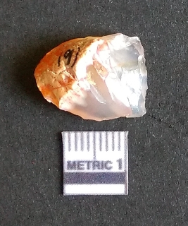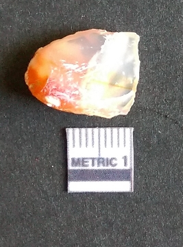 | Description / विवरण | The chalcedony piece is a part of lithic debitage as a result of lithic knapping. The characteristic amber yellowish colour of this material has made it a popular semi-precious stone for bead manufacture, etc. The cryptocrystalline material shhows flake scars and sharp cut edges due to flaking. Bulb of percussin is visible on the proximal end. |