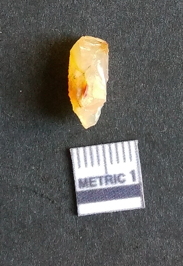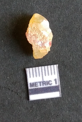 | Description / विवरण | The chalcedony piece is a part of lithic debitage as a result of lithic knapping. The characteristic amber yellowish colour of this material has made it a popular semi-precious stone for bead manufacture, etc. The cryptocrystalline material shhows flake scars and sharp cut edges due to flaking. Bulb of percussin is visible on the proximal end. |