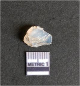 | Description / विवरण | It is a quartz flake with numerous flake scars on the surface and a striking platform. The piece seems to be a waste product of lithic manufacture. The appearance is translucent due to silica as the chemical component of quartz. |