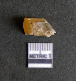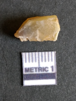 | Description / विवरण | The chalcedony piece is a part of lithic debitage as a result of lithic knapping. The characteristic amber yellowish colour of this material has made it a popular semi-precious stone for bead manufacture, etc. The cryptocrystalline material shhows flake scars and sharp cut edges due to flaking. Bulb of percussin is visible on the proximal end. |