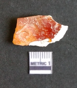 | Description / विवरण | The chalcedony piece is a part of lithic debitage as a result of lithic knapping. The characteristic amber yellowish colour of this material has made it a popular semi-precious stone for bead manufacture, etc. The cryptocrystalline material shhows flake scars and sharp cut edges due to flaking. Bulb of percussin is visible on the proximal end. |