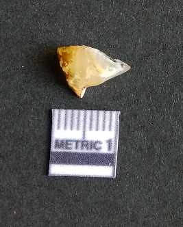 | Description / विवरण | The chalcedony piece is a part of lithic debitage as a result of lithic knapping. The characteristic amber yellowish colour of this material has made it a popular semi-precious stone for bead manufacture, etc. The cryptocrystalline material shhows flake scars and sharp cut edges due to flaking. Bulb of percussin is visible on the proximal end. |