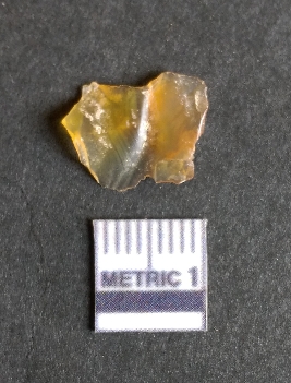 | Description / विवरण | The chalcedony piece is a part of lithic debitage as a result of lithic knapping. The characteristic amber yellowish colour of this material has made it a popular semi-precious stone for bead manufacture, etc. The cryptocrystalline material shhows flake scars and sharp cut edges due to flaking. Bulb of percussin is visible on the proximal end. |