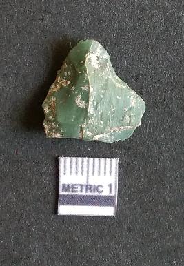 | Description / विवरण | The chert flake shows prominent bulb of percussion on the proximal end. The flake also shows the process of core reduction or retouch owing to the secondary flaking. The flake rigdes are also visible. |