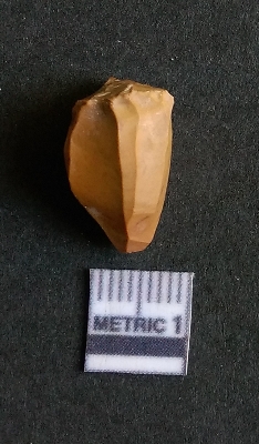 | Description / विवरण | The chert flake shows prominent bulb of percussion on the proximal end.The flake rigdes are also visible. It is a fluted core, for blade removal |