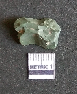 | Description / विवरण | The chert flake shows prominent bulb of percussion on the proximal end. The flake also shows the process of core reduction or retouch owing to the secondary flaking. The flake rigdes are also visible. |