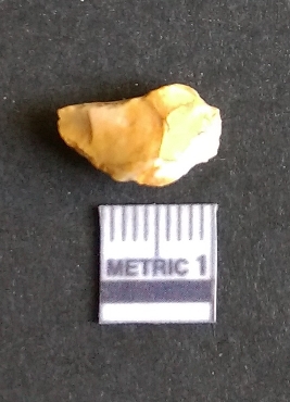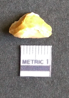 | Description / विवरण | The chert flake shows prominent bulb of percussion on the proximal end. The flake also shows the process of core reduction or retouch owing to the secondary flaking. The flake rigdes are also visible. |