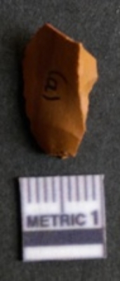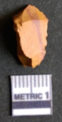 | Description / विवरण | The chert flake shows prominent bulb of percussion on the proximal end. The flake also shows the process of core reduction or retouch owing to the secondary flaking. The flake rigdes are also visible. |