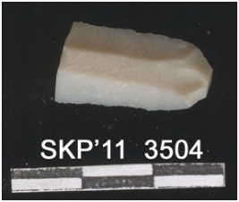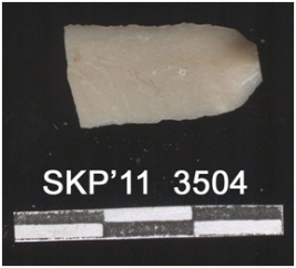 | Description / विवरण | Broken chert blades, the ridges can be clearly seen, the sides are retouched. It is trapezium in cross section. |