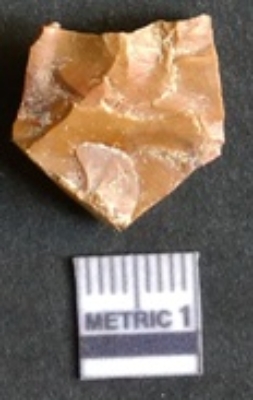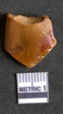 | Description / विवरण | The chert flake shows prominent bulb of percussion on the proximal end. The flake also shows the process of core reduction or retouch owing to the secondary flaking. The flake rigdes are also visible. |