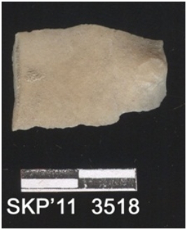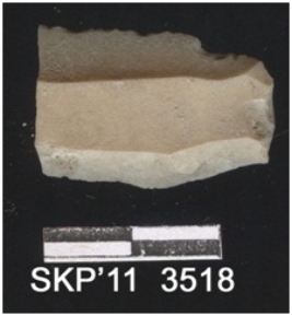 | Description / विवरण | Broken chert blade, the ridges can be seen clearly. The sides are retouched. It is trapezium in cross section. |