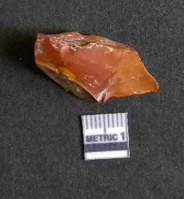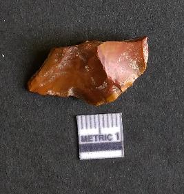 | Description / विवरण | The chert flake shows prominent bulb of percussion on the proximal end. The flake also shows the process of core reduction or retouch owing to the secondary flaking. The flake rigdes are also visible. |