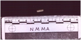 | Description / विवरण | The Ernestite fragment is a grayish oblong fragment which was used as drill for beads. |