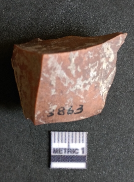 | Description / विवरण | The chert flake shows prominent bulb of percussion on the proximal end. The flake also shows the process of core reduction or retouch owing to the secondary flaking. The flake rigdes are also visible. |