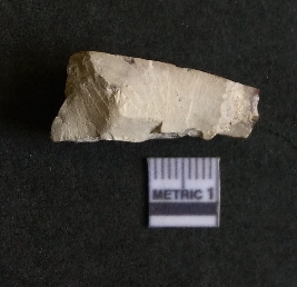 | Description / विवरण | The chert flake shows prominent bulb of percussion on the proximal end. The flake also shows the process of core reduction or retouch owing to the secondary flaking. The flake rigdes are also visible. |