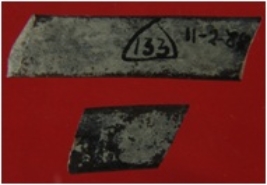 | Description / विवरण | Trench WB 2, Qdt 1, pit 2 SB layer 1, depth 31-46 cms It is a blade made of bone. Obverse side surface is smooth and reverse side surface is rough. Broken into two pieces. |