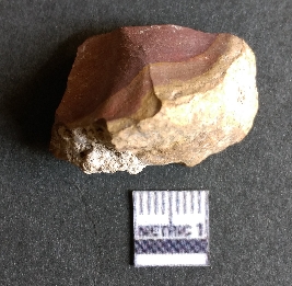 | Description / विवरण | The chert flake shows prominent bulb of percussion on the proximal end. The flake also shows the process of core reduction or retouch owing to the secondary flaking. The flake rigdes are also visible. |
