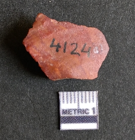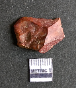 | Description / विवरण | The chert flake shows prominent bulb of percussion on the proximal end. The flake also shows the process of core reduction or retouch owing to the secondary flaking. The flake rigdes are also visible. |