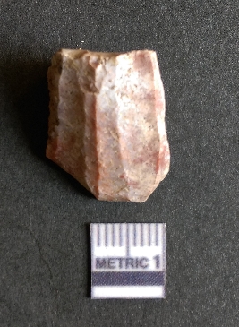 | Description / विवरण | The chert flake shows prominent bulb of percussion on the proximal end. The flake also shows the process of core reduction or retouch owing to the secondary flaking. The flake rigdes are also visible. |