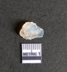 | Description / विवरण | It is a quartz flake with numerous flake scars on the surface and a striking platform. The piece seems to be a waste product of lithic manufacture. The appearance is translucent due to silica as the chemical component of quartz. |