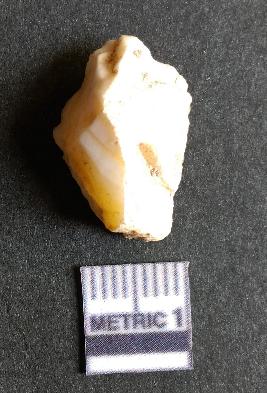| Description / विवरण | It is a quarts flake with numerous flake scars on the surface and a striking platform. The piece seems to be a waste product of lithic manufacture. The appearance is translucent due to silica as the chemical component of quartz. |