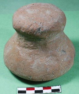 | Description / विवरण | Complete terracotta dabur with round headed top and circular round base.Its colour is red and smooth surface. |