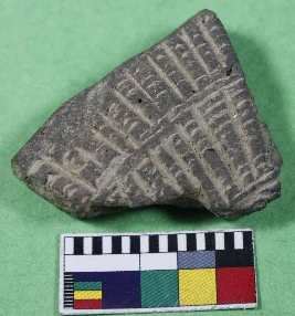 | Description / विवरण | Fragmentry part of terracotta stam with uneven shape and size,haing deep parrallel design on exterior.Its colour is grey and smooth surface. |