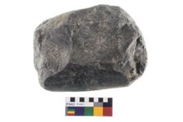 | Description / विवरण | A partially broken specimen of a oval shaped Mueller stone with oval section and concave end. |