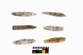| Description / विवरण | A set of 20 intact microlithic blades, made of chalcedony. All these blades have retouching and sharp edges. |
