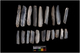 | Description / विवरण | There are a set of 20 intact microlithic blades made up of chalcedony. Within this assemblage 11 are intact and 9 are partially broken. All this blades contain retouching and sharp edges. |