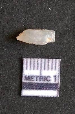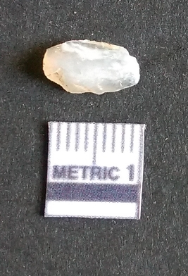 | Description / विवरण | It is a quartz flake with numerous flake scars on the surface and a striking platform. The piece seems to be a waste product of lithic manufacture. The appearance is translucent due to silica as the chemical component of quartz. |