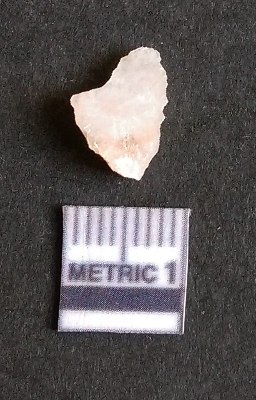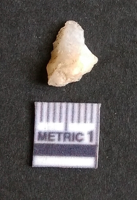 | Description / विवरण | It is a quarts flake with numerous flake scars on the surface and a striking platform. The piece seems to be a waste product of lithic manufacture. The appearance is translucent due to silica as the chemical component of quartz. |