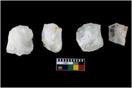 | Description / विवरण | There are n-4 of Cores. All are made of Quartz.They are fully fluted cores without any trace of Crested ridge flake. |