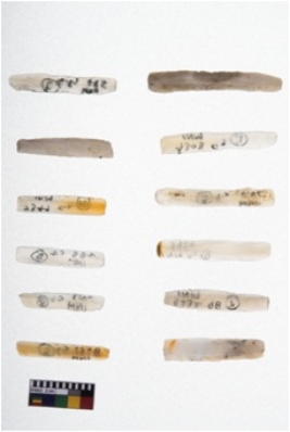 | Description / विवरण | A set of intact microlithic blades, made of chalcedony. All these blades have retouching and sharp edges. |
