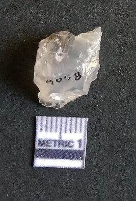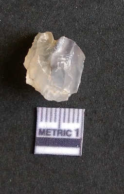 | Description / विवरण | It is a quartz flake with numerous flake scars on the surface and a striking platform. The piece seems to be a waste product of lithic manufacture. The appearance is translucent due to silica as the chemical component of quartz. |
