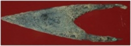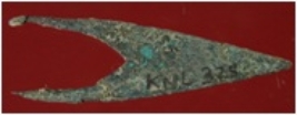 | Description / विवरण | Trench WC 2, Qdt 2, layer 3, depth 36-65 cm It is an arrow head made of copper. Shape is triangular and it has one tip on top and two tips on bottom. Patina is present on it. |