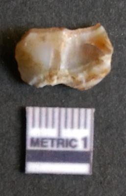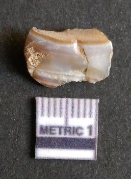 | Description / विवरण | The agate flake has numerous flake scars and sharp flaked edges. The piece shows a positive bulb of percussion and long angular ends. The crypto-crystalline material was chosen for manufacture of lithic tools, etc owing to the fracture pattern of the stone. |