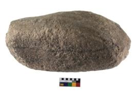 | Description / विवरण | A partially broken specimen of a roughly cylindrical shaped Grinding stone with oval section. |
