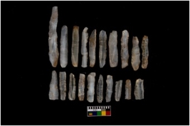 | Description / विवरण | A set of 20 intact microlithic blades, made up of chalcedony. All these blades have retoching and sharp edges. |