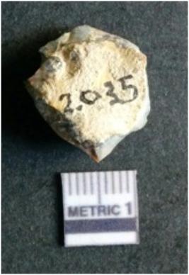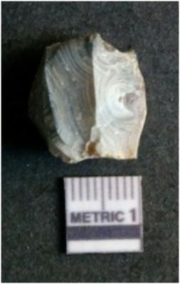 | Description / विवरण | The agate flake has numerous flake scars and sharp flaked edges. The piece shows a positive bulb of percussion and long angular ends. The crypto-crystalline material was chosen for manufacture of lithic tools, etc owing to the fracture pattern of the stone. |
