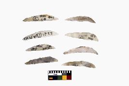 | Description / विवरण | A set of 8intact microlithic blades, made of chalcedony. All these blades have retouching and sharp edges. |