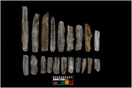 | Description / विवरण | A set of 20 intact microlithic blades, made up of chalcedony. All these blades have retoching and sharp edges. |