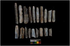 | Description / विवरण | A set of 20 intact microlithic blades, made up of chalcedony. All these blades have retoching and sharp edges. |