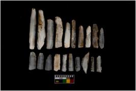 | Description / विवरण | A set of 20 intact microlithic blades, made up of chalcedony. All these blades have retoching and sharp edges. |
