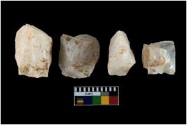 | Description / विवरण | There are n-4 of Cores. All are made of Quartz.They are fully fluted Cores without any trace of Crested ridge flake. |