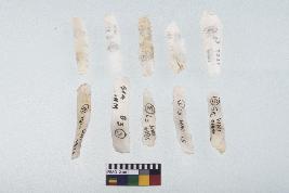 | Description / विवरण | A set of 10 intact microlithic blades, made of chalcedony. All these blades have retouching and sharp edges. |