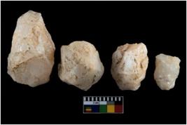 | Description / विवरण | There are n-4 of Cores. All are made of Quartz.Thet are fully fluted Cores without any trace of Crested ridge flake. |
