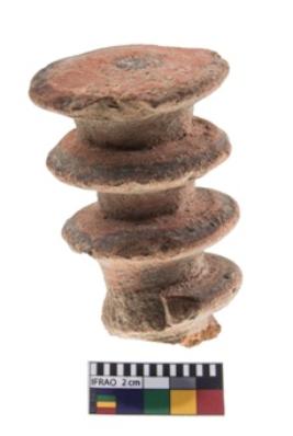 | Description / विवरण | A circular studded handle . Around of paintings are shown on four tiers. It has a butt. |